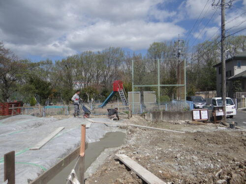 電気工事屋さんと現場で仮設電気の設置日程を打合せを済ませて帰ります。