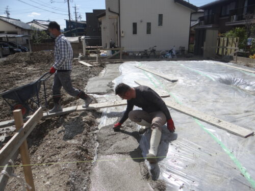 基礎の立ち上がる部分の位置決めをするためには墨打ちをしなければなりません。