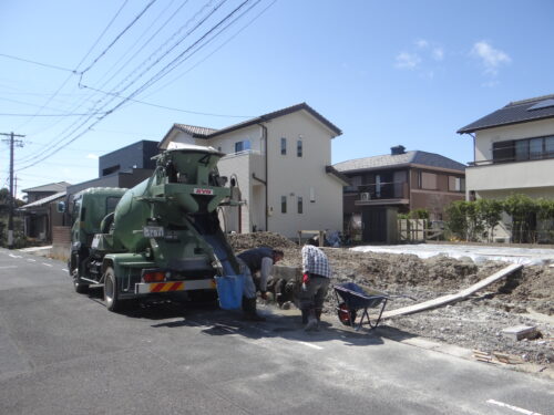 墨出しをするため「捨てコンクリート」を打ってそこに墨の線を出していくんです。